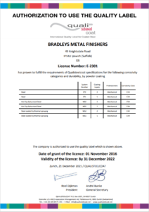 As a specialist in metal finishing, we’re honoured to have been awarded Qualisteelcoat accreditation for the 5th year in a row. It’s the International Gold Standard in coating systems for steel, providing the highest levels of quality assurance to our customers.