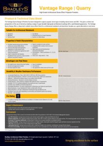 The Vantage Quarry Range offers a deep-matt, realistic stone-effect finish for architectural metalwork and aluminium facades as a great alternative to real stone.