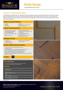Bradleys Oxide Range of rust-effect finishes provides a superior aesthetic finish with outstanding properties which will protect the substrate and retain a decorative, durable and corrosion-free finish.