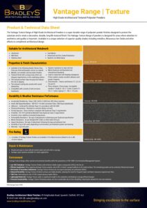- A number of Vantage texture finishes are available in Fire Rated versions (Rated to A2-s1,d0) on prior request